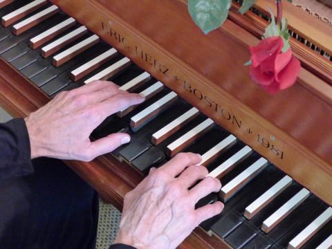 The ensemble includes pianist Peggy Payne, violinist Densi Rushing, and cellist Jim Shelley.