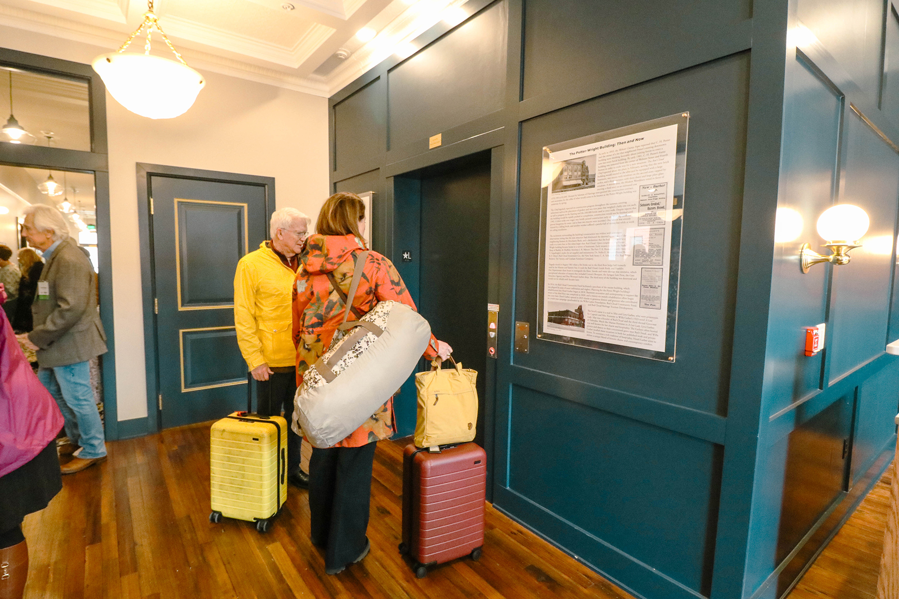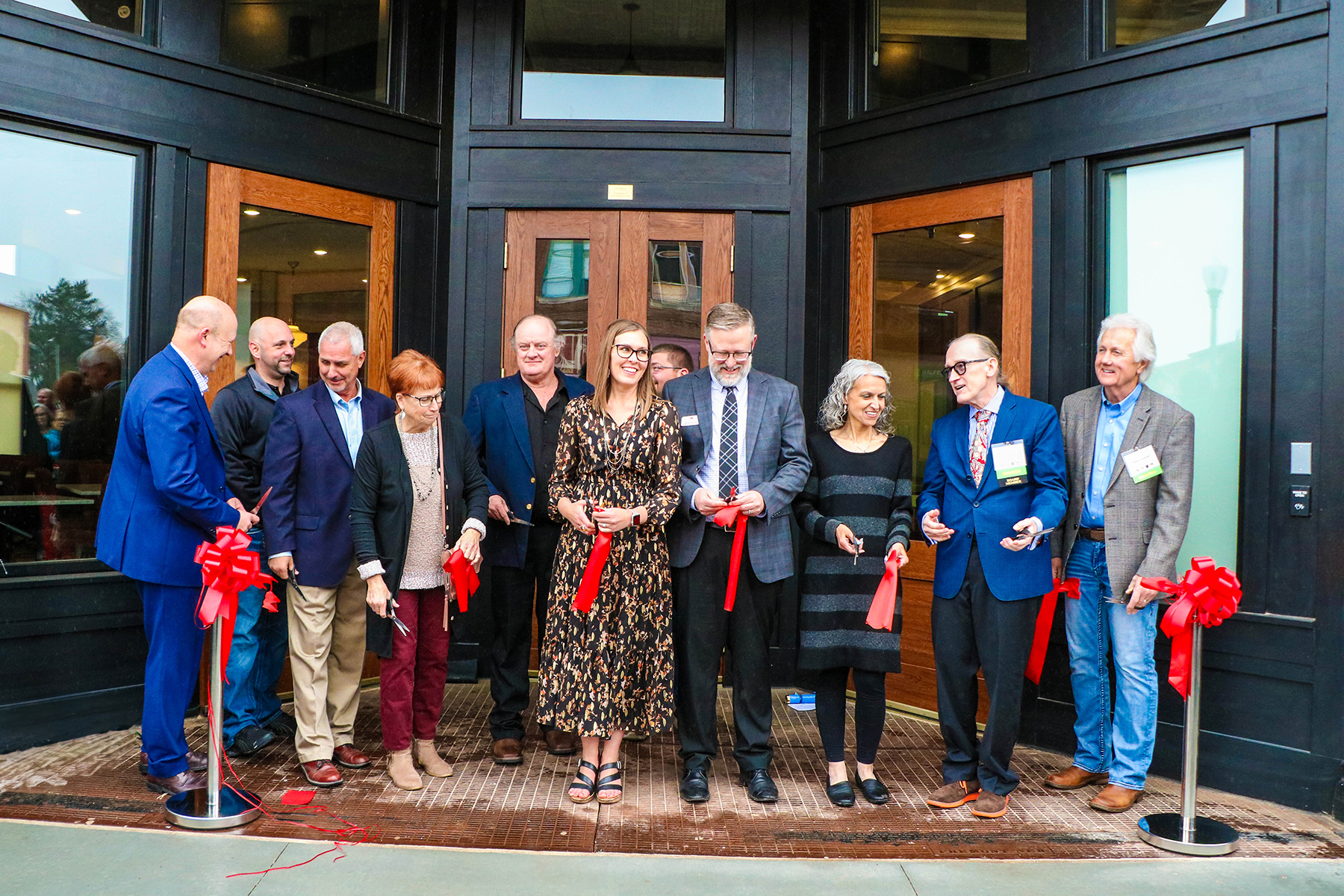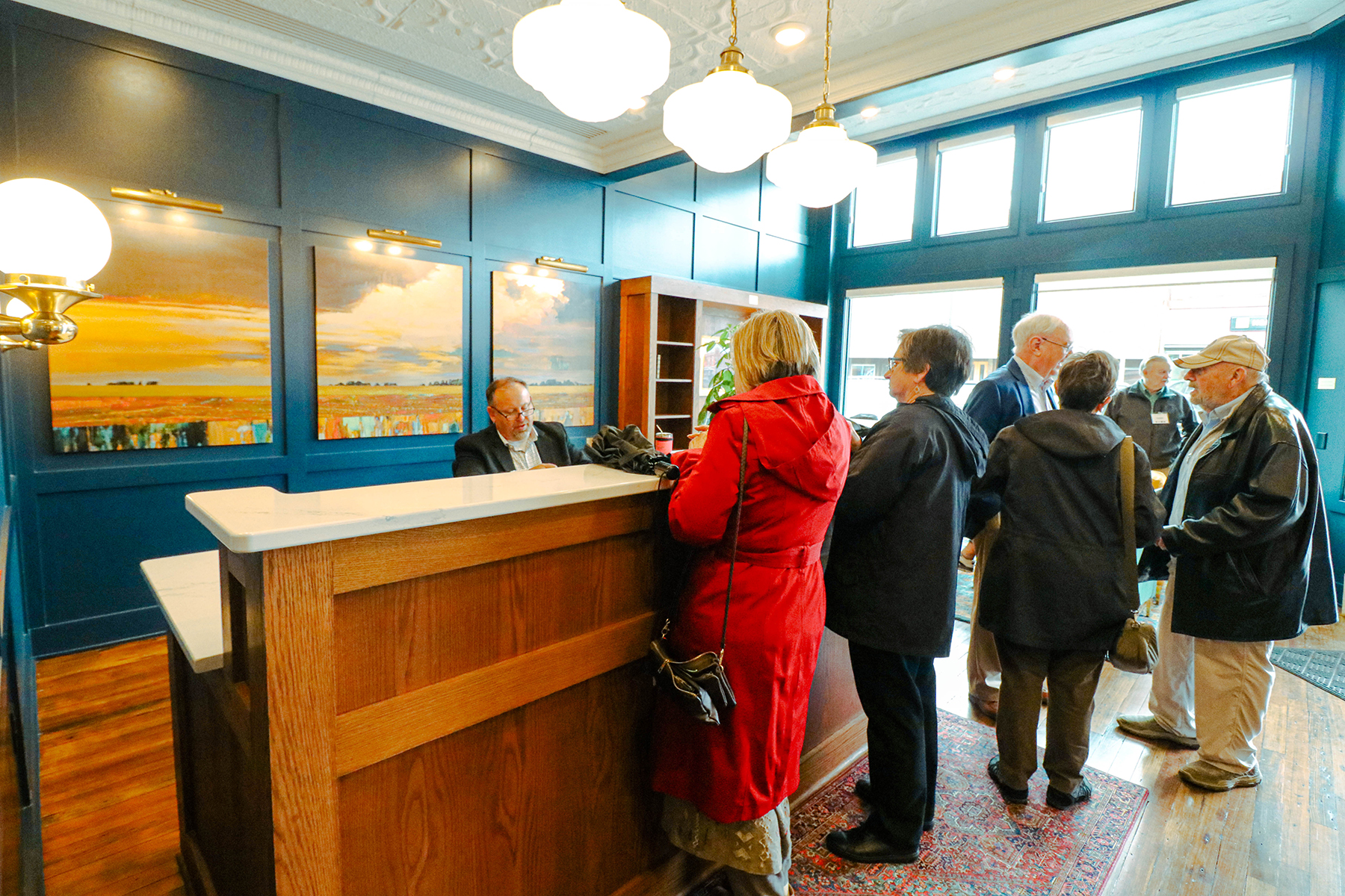 RED CLOUD, NE—The National Willa Cather Center celebrated the long-awaited soft opening of Hotel Garber on Friday, April 4. More than one hundred people gathered for celebratory remarks, a ribbon-cutting, open house, and self-guided tours. The occasion bookended more than eight years of planning, fundraising, and construction that helped rehabilitate an empty historic commercial building into a boutique hotel and event center.